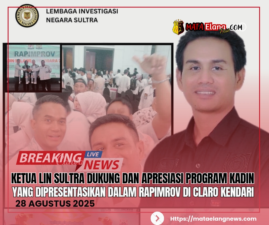 Mataelangnews.com || Kendari-Sultra, – Ketua Lembaga Investigasi Negara (LIN) Provinsi Sulawesi Tenggara, Adyansyah, memberikan apresiasi dan dukungan penuh atas langkah jitu yang dilakukan oleh Ketua Kamar Dagang dan Industri (Kadin) Sultra, Anton Timbang, dalam menyukseskan Rapat Pimpinan Provinsi (Rapimprov) Kadin Sultra Tahun 2025 yang digelar di Hotel Claro Kendari, Rabu (27/8/2025).