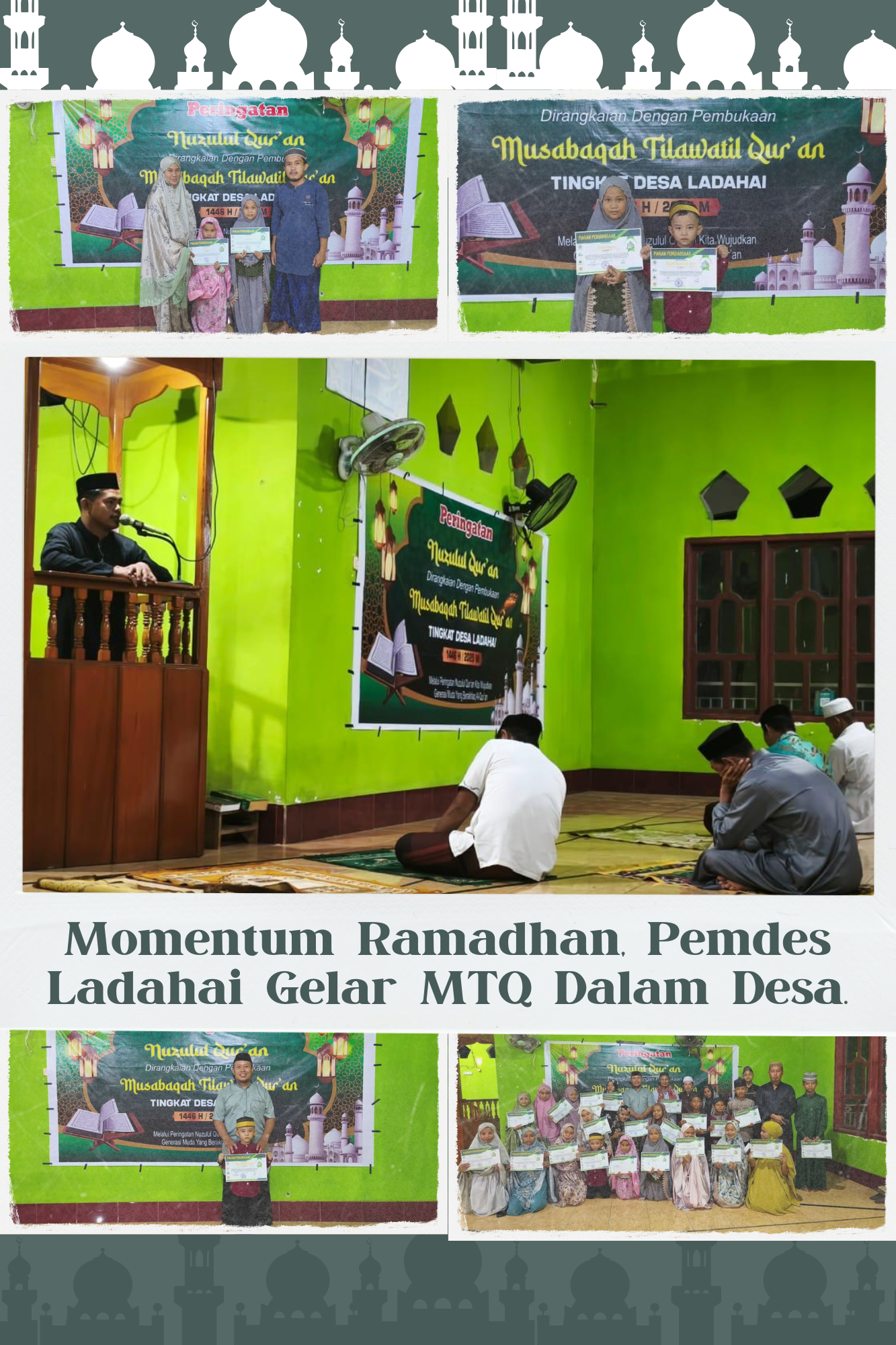 Pelaksanaan MTQ di panitiai oleh pengurus mesjid desa ladahai yang dalam pembukaannya di hadiri langsung oleh kepala desa ladahai beserta ketua bpd, imam desa, tokoh masyarakat dan semua aparat serta perangkat desa ladahai, yang diikuti oleh anak-anak para peserta lomba.