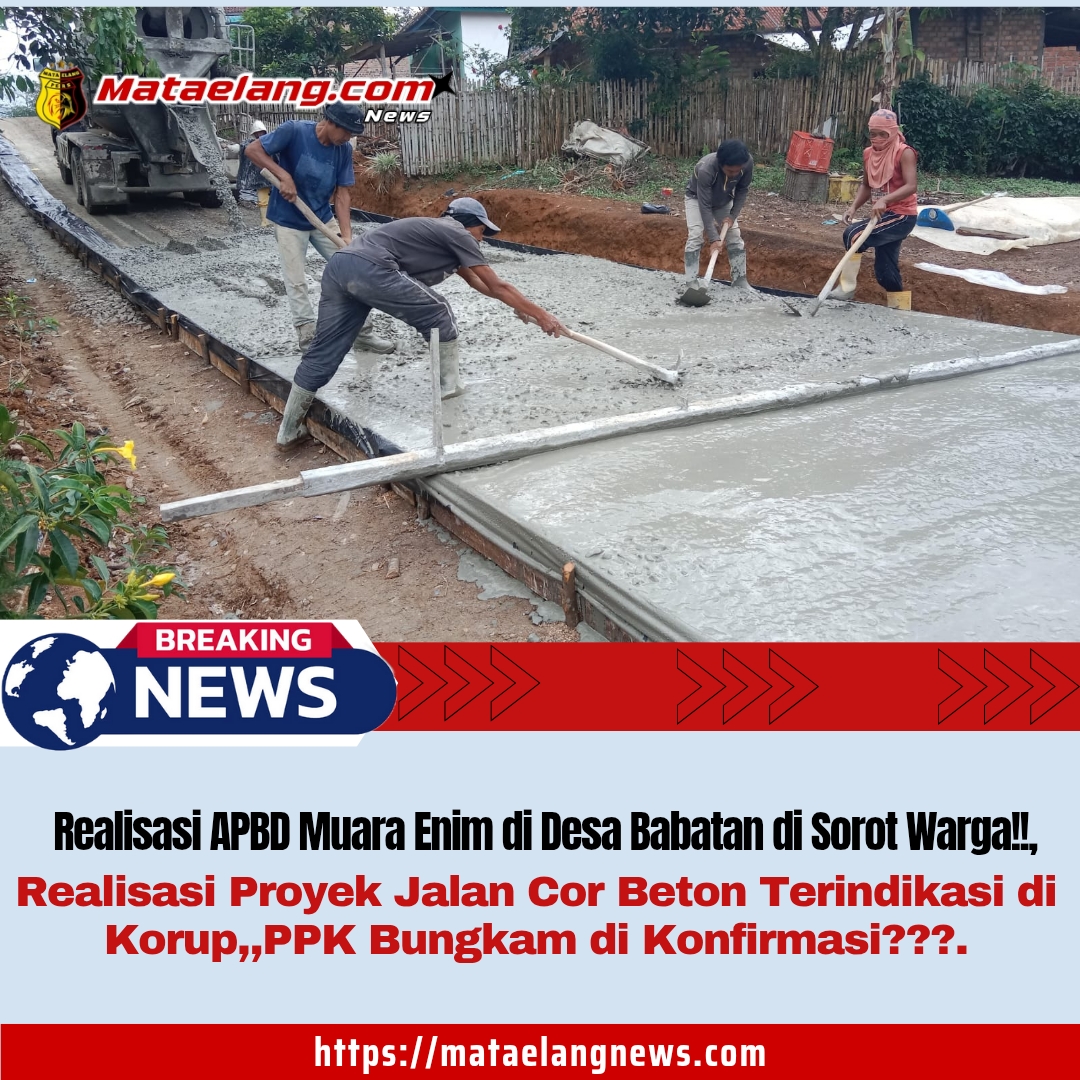 Mataelangnews.com || Muara Enim-Sumsel, -Realisasi Anggaran bersumber dari Anggaran Pendapatan Belanja Daerah (APBD) Kabupaten Muara Enim, Provinsi Sumatera Selatan (Sumsel), yang dialokasikan Pada Proyek Pembangunan jalan cor beton desa Babatan, Kecamatan semendo darat laut, di Sorot Warga. Sabtu, 13/09/2025.