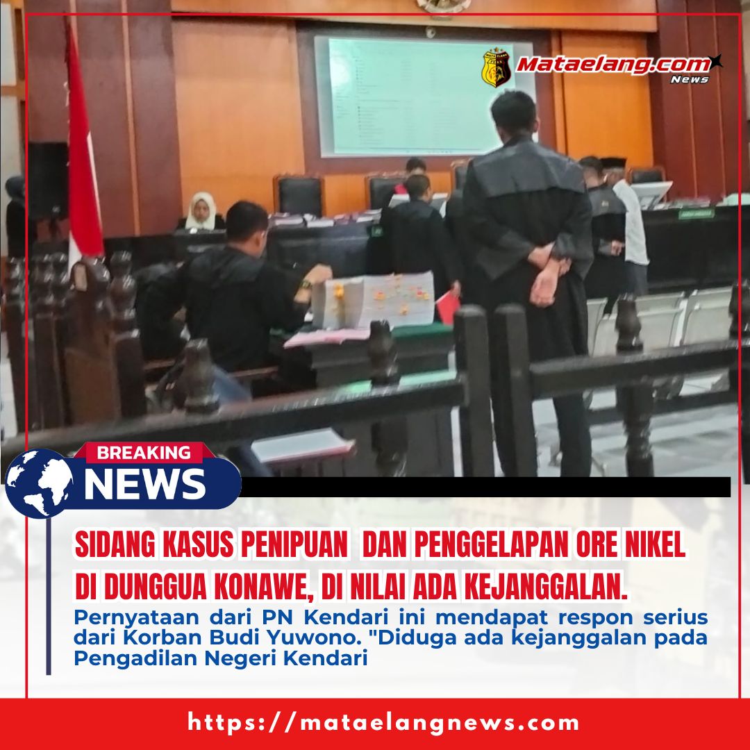 Mataelangnews.com || Kendari-Sultra, -Perkara nomor: 294/B/pid/2025//pn kdi, Deny Zainal Ahuddin Dituntut 4 Tahun Penjara dan Istrinya Maliatin Dituntut 3 Tahun penjara oleh Jaksa Penuntut Umum (JPU) Kejaksaan Agung-RI atas dugaan penipuan dan penggelapan ore nikel yang bergulir di Pengadilan Negeri Kendari Kamis (6/11/2025).