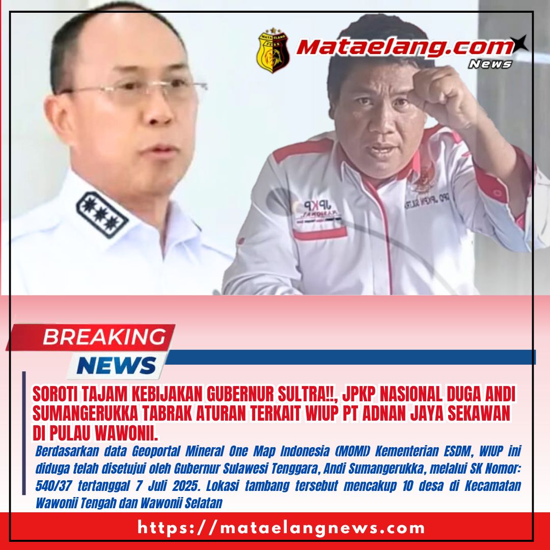 Mataelangnews.com || KENDARI-Sultra,- Dewan Pimpinan Daerah (DPD) dan Dewan Pimpinan Pusat (DPP) Lembaga JPKP Nasional memberikan atensi serius terhadap munculnya Wilayah Izin Usaha Pertambangan (WIUP) batuan diorit PT Adnan Jaya Sekawan seluas 626,09 hektare di Pulau Wawonii, Kabupaten Konawe Kepulauan (Konkep).