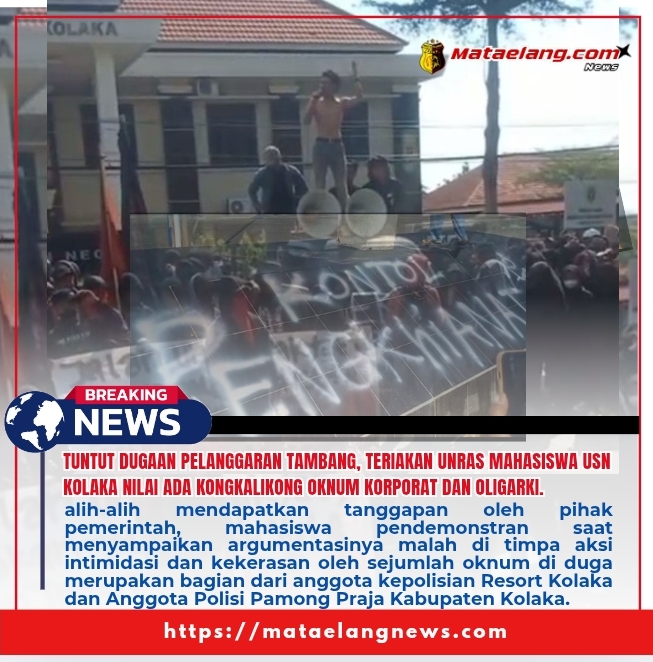 Mataelangnews.com || Kolaka-Sultra, Baru-baru ini, tepatnya pada kamis 09 Oktober 2025 kemarin, ratusan mahasiswa fakultas Sains dan Teknologi Univesitas Negeri Sembilan Belas November (USN) kabupaten Kolaka mendatangi Kantor DPRD dan Kantor Bupati Kolaka melakukan Aksi Unjuk Rasa sebagai bentuk kekecawaan terhadap pemerintah dinilai tak menanggapi aspirasi yang kerap di kumandangkan yang menimbulkan kesan ada kongkalikong oleh sejumlah pihak oknum pemerintah kabupaten kolaka. Kamis (10/10/25).